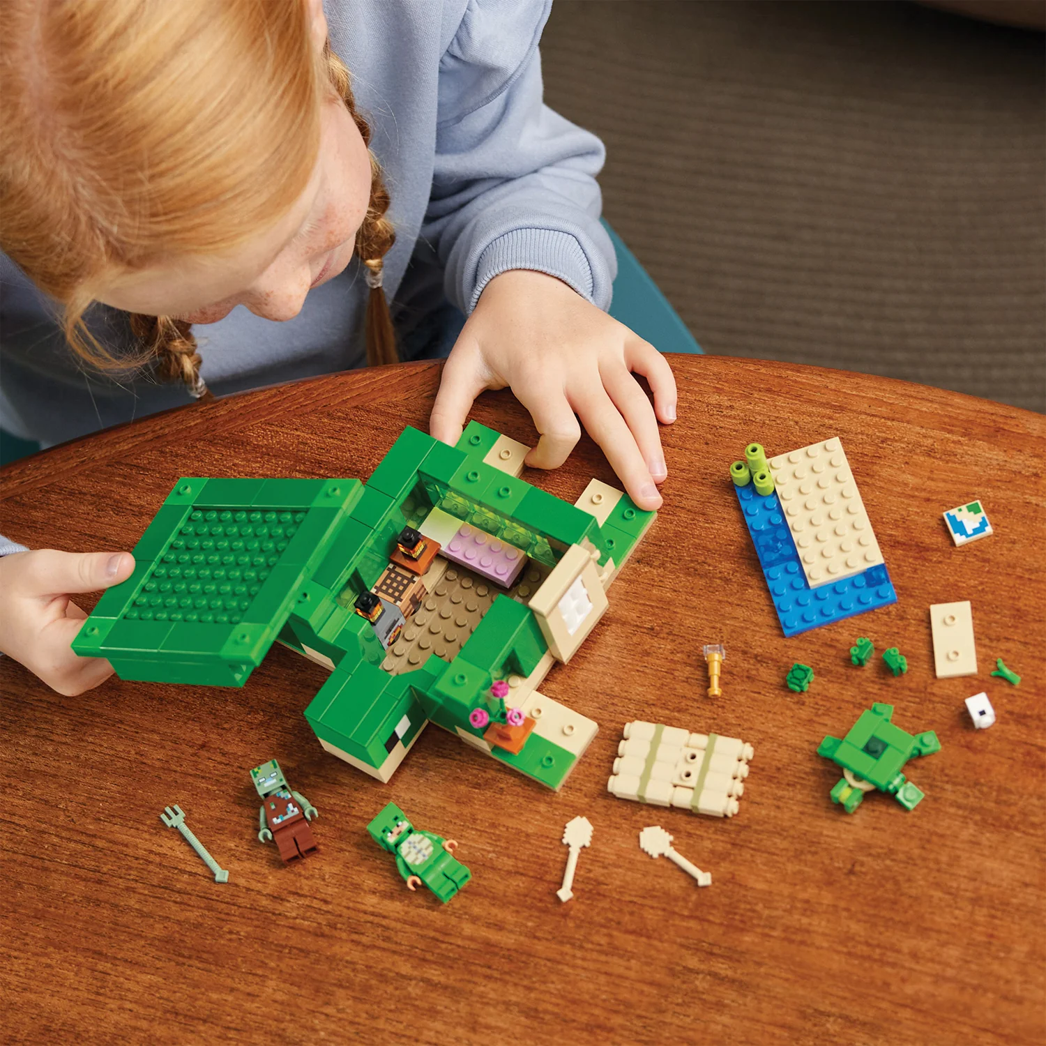 - LEGO® Minecraft® turtle house model – This gift for gamers and kids features iconic Minecraft mob characters and is a versatile building toy for girls and boys aged 8+